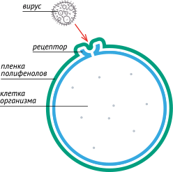 Природные вещества (полифенолы), содержащиеся в большом количестве в экстракте Ладанника шалфеелистного, при рассасывании таблетки образуют на слизистой оболочке верхних дыхательных путей непроницаемую для вирусов и бактерий защитную пленку, блокируя таким образом атаку вирусов и их проникновение в организм человека.